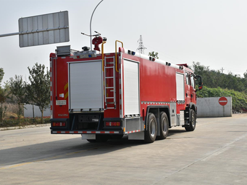 豪沃TX7后雙橋泡沫消防車是由二類汽車底盤、罐體、水泵、管路、儀表電路系統等部件組成,該車裝配鋁合金后爬梯(可拆卸),泵房在整車尾部,罐體為鋼板焊接式,載液量17.0方(水14方/泡沫3方),水罐材質為優質碳鋼板,水罐內部做防腐處理,泡沫罐為不銹鋼材質。該車裝備CB10/80常壓消防泵,PL8/64兩用消防炮。