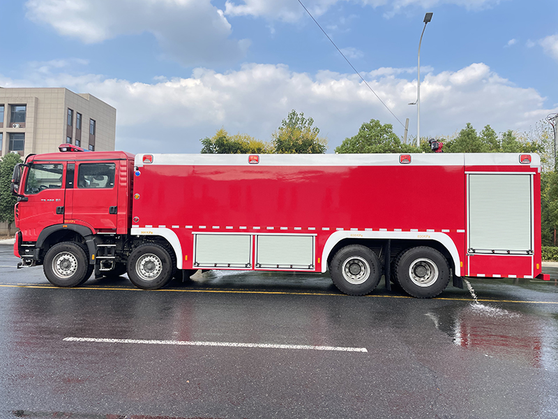備注: | 備注:選裝右側安裝不同樣式的裝飾板和選裝后部帶拉梯架裝置。罐體總容積為24.724立方米,水罐容積:20.900立方米,水罐尺寸:5840×2450×1530mm,泡沫液罐容積:3.824立方米,泡沫液罐尺寸:1070×2450×1530mm。整體式側防護結構,后防護裝置材料:Q23 **,截面尺寸:120×120mm,與車輛連接方式:螺栓連接,后防護離地高度:465mm, A BS生產企業為威伯科(上海)管理有限公司型號為4460046300。主要專用裝置有CB10/100消防泵、PL80消防炮,水射程≥70m,泡沫射程≥65m。 | |||||