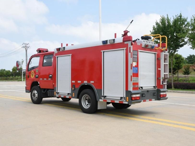 東風小多利卡水罐消防車是由二類汽車底盤、水罐、水泵、管路、儀表電路系統等 部件組成,該車裝配鋁合金后爬梯(可拆卸),泵房在整車尾部,罐體為鋼板焊接式, 罐體材質為優質碳鋼板,罐體內部做防腐處理,載水2.5方。該車裝備 CB10/20 消防泵,
